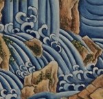 Rock formations in Tibetan landscape painting reveals a strong influence of elements of Chinese Ming style painting with its spaciousness and natural depiction of landscape elements. The most favoured colour scheme for shading these rocks was with blue and green, the two mineral pigments derived from natural stone deposits.